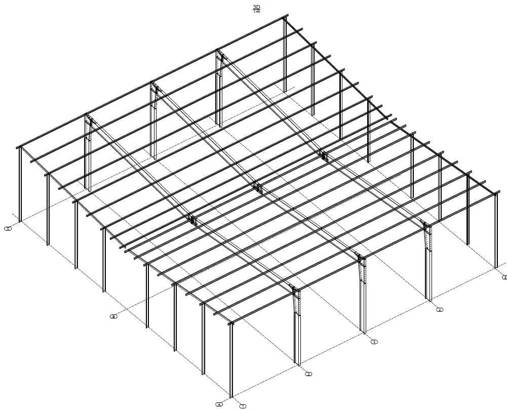 L’objectif principal était de confirmer la tenue de la charpente métallique à la modification de la couverture et à l’ajout des charges permanentes générées par les panneaux photovoltaïques.